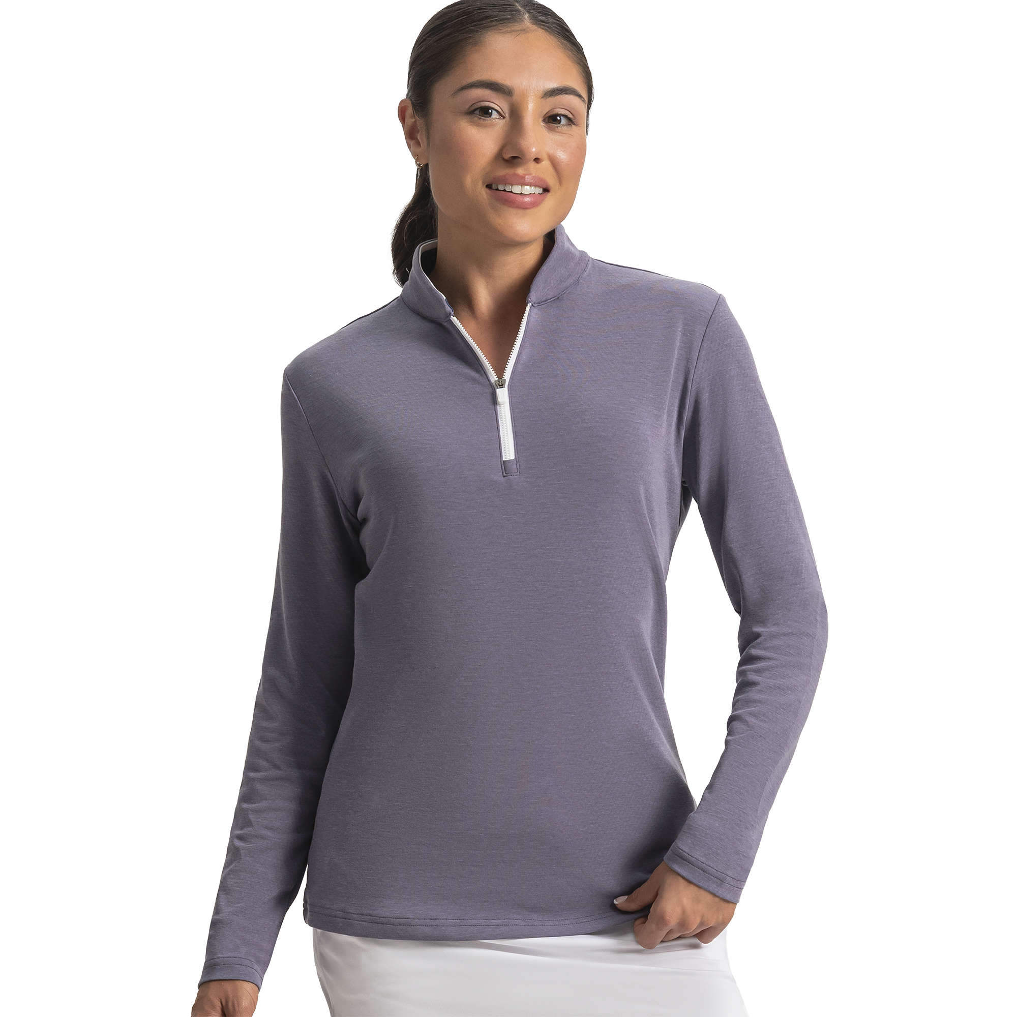 Women's mid-layers are versatile pieces that allow the player to adapt to changing weather conditions. The four-way stretch fabric helps keep your core warm while allowing free range of motion throughout the golf swing.